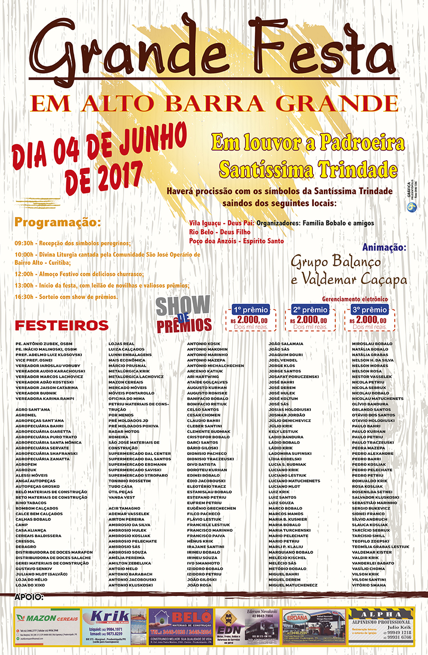 Prudentópolis tem a tradição de festas em localidades do interior, onde acontece a missa na igreja da comunidade e após ao 12h almoço festivo!!